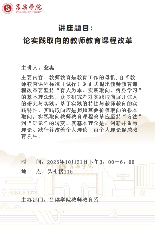 我系将于2025年10月21日下午3:00-6:00在弘礼楼115会议室举办《论实践取向的教师教育课... [详细] |