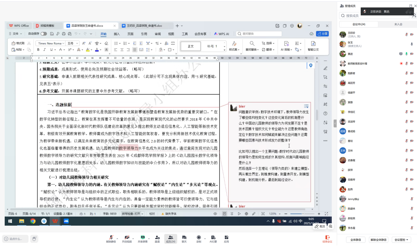 为切实提升我系教师国家三类项目申报书质量,提高项目立项率,系部联合晋绥教育研究中心特邀南京师范大学博士生导师黄进教授2025年11月22日上午,利用腾讯会议为我系教师开展了课题申报书专项审阅和集中指导活动。指导会聚焦申报书质量提升,旨在精准把脉,针对选题及申报书中的具体问题提出修改意见和建议。