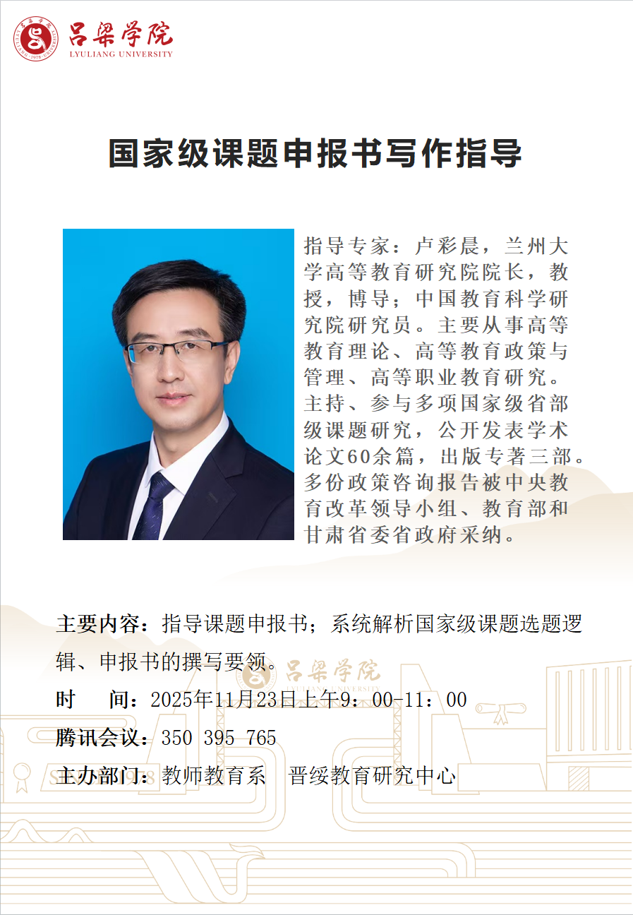 为持续提升我系教师国家级课题申报书质量与立项竞争力,系部联合晋绥教育研究中心特邀... [详细] |