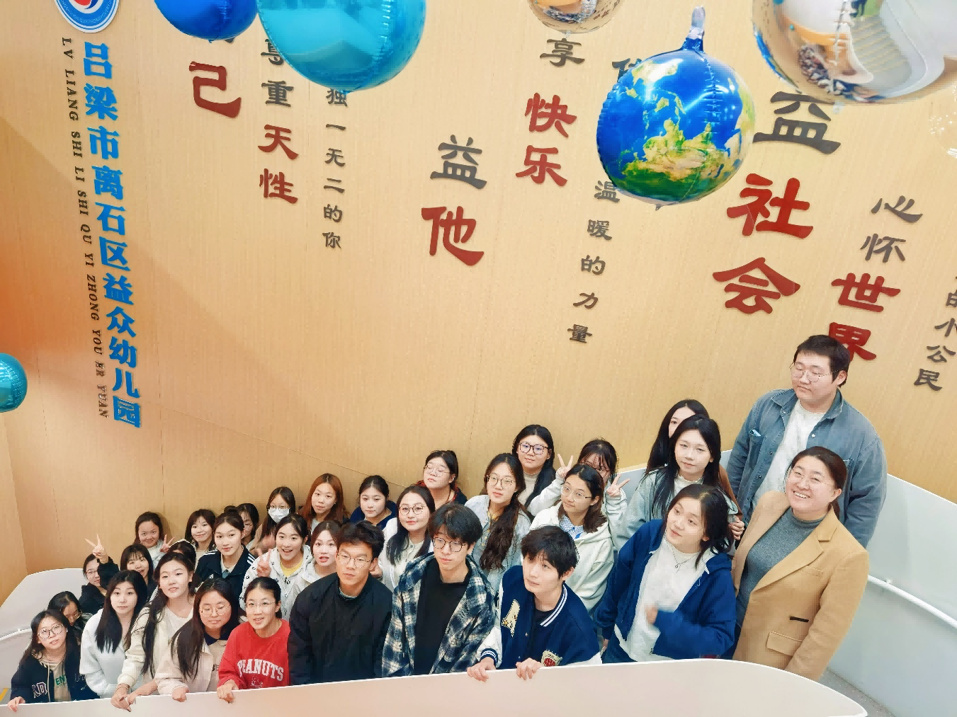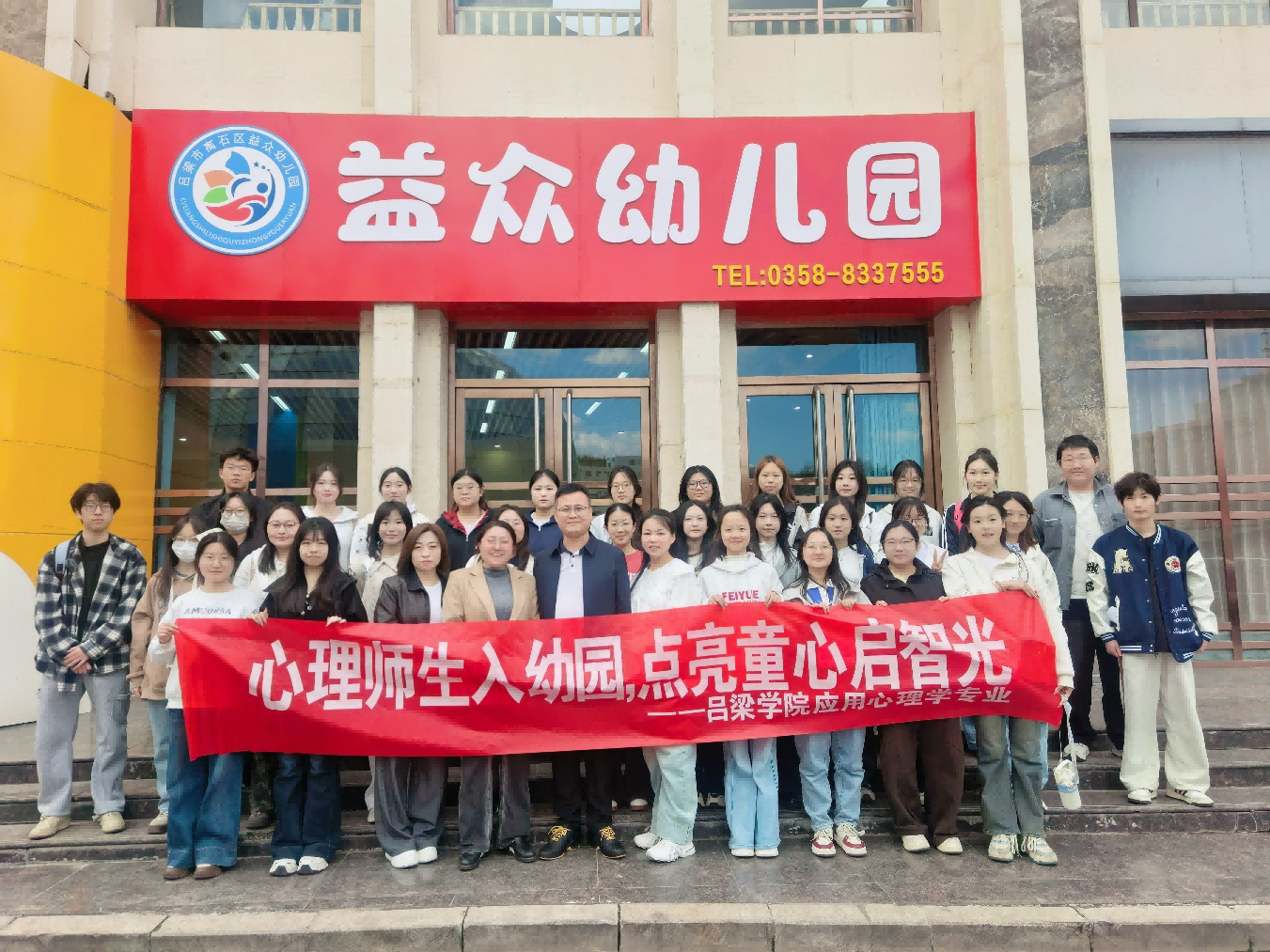 为深化对幼儿心理发展特点的理解,推动课堂理论与儿童发展实际深度融合,3月31日下午,我系2024级应用心理学专业学生,在《发展心理学》任课教师、系综合办主任王宝英的带领下,走进吕梁市益众幼儿园,开展幼儿行为观察课程实践活动。本次活动以“心理师生入幼园,点亮童心启智光”为主题,让学生在沉浸式观察中,直观掌握不同年龄段幼儿的认知与社会性发展特点,实现理论学习与实践应用的同频共振。