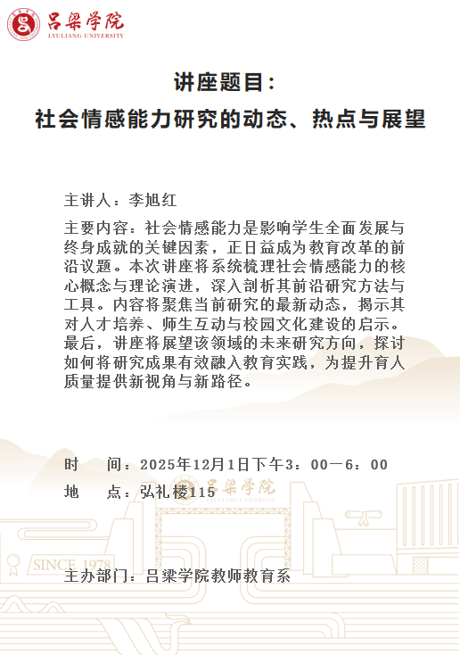 《社会情感能力研究的动态、热点与展望》主题讲座预告