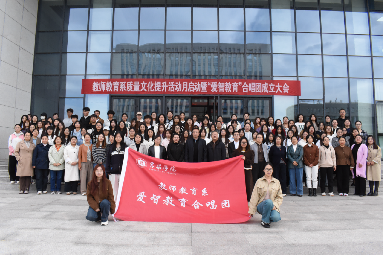 10月14日,我系在弘礼楼前举行质量文化提升活动月启动仪式暨“爱智教育”合唱团成立大会,校团委副书记、吕梁学院新时代文明实践晋绥剧社社长郝亚琼,合唱团指导老师、艺术系李晓军,我系全体教职员工参加活动。