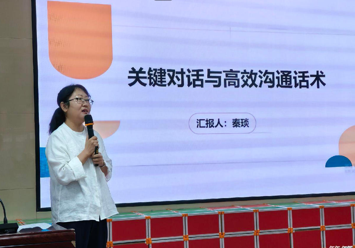 在北城中学,秦琰团队直面初中生青春期教育困境,以“同心同行,合力赋能”为主题,创造性提出“角色转型理论”,呼吁家长从焦虑的催促者蜕变为智慧的引导者与温暖的守望者,通过建立教育共识、重构沟通模式实现家校协同育人,现场四百余名家长反响热烈;在吕梁市第一小学秋季教师培训中,以“关键对话与高效沟通话术”为核心,系统阐释埃里克森人格发展理论在基础教育中的应用,提炼出“三明治沟通法则”(赞赏-事实建议-鼓励)及三大沟通铁律——剥离情绪陈述事实、聚焦行为避免评判、强化共同体意识,为教师破解家校矛盾提供方法论支撑。在城内小学师德师风建设大会及英雄街初中暑期培训中,秦琰老师进一步将理论转化为区域教育实践,针对小学生心理危机干预提出“四维观察法”(行为记录、情绪标注、需求解码、资源联动),并开发“家校彩虹桥”协作模型,被梁海花校长誉为“重塑育人生态的破局之策”。
