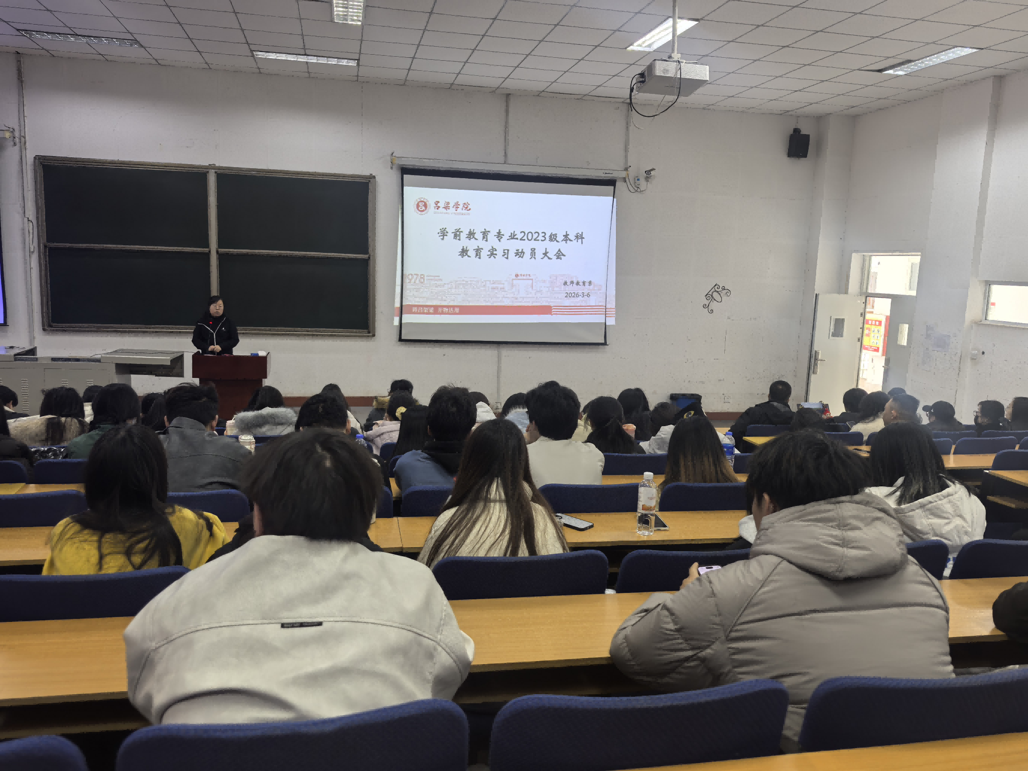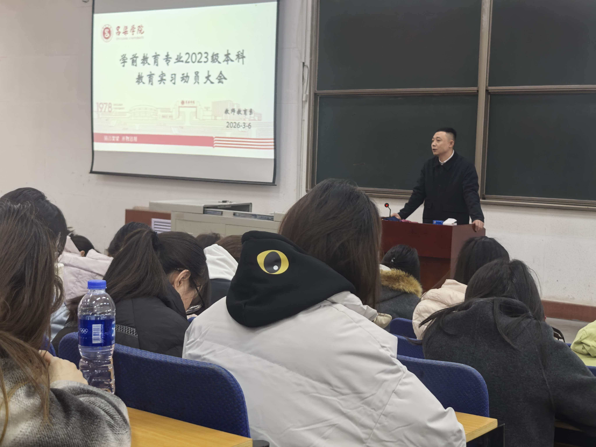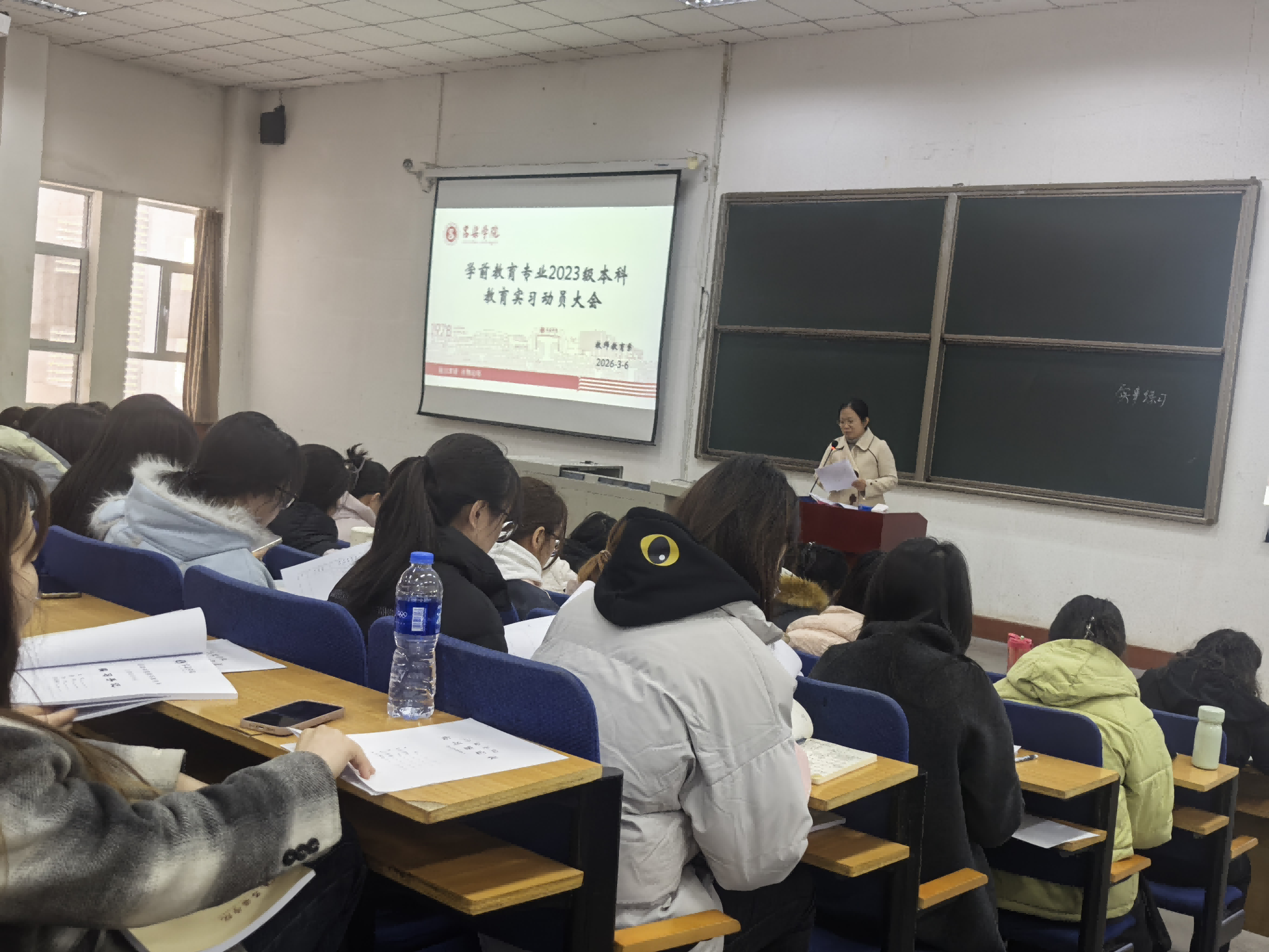 为扎实推进2023级学前教育专业教育实习工作有序开展,进一步引导学生明确实习目标与要求,强化安全意识,3月6日,我系在弘毅楼1c-202教室隆重召开2023级本科教育实习动员大会。系领导班子成员、教研室主任、实习指导教师、辅导员以及2023级学前教育专业全体本科生参加会议。会议由系副主任薛萍主持。